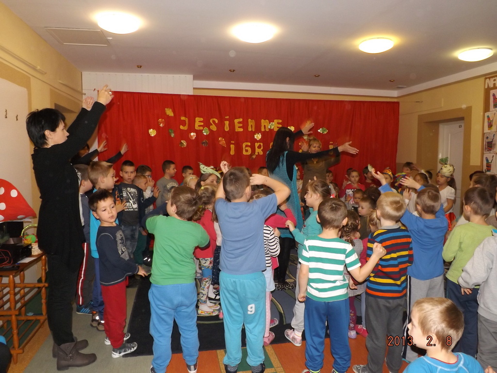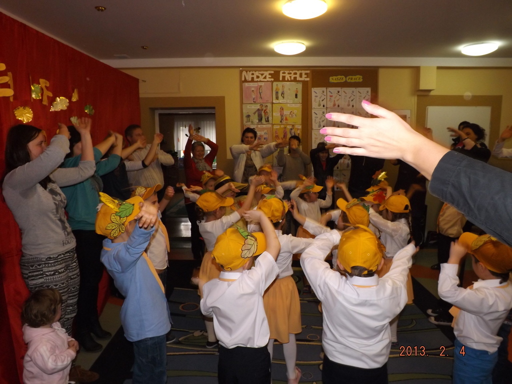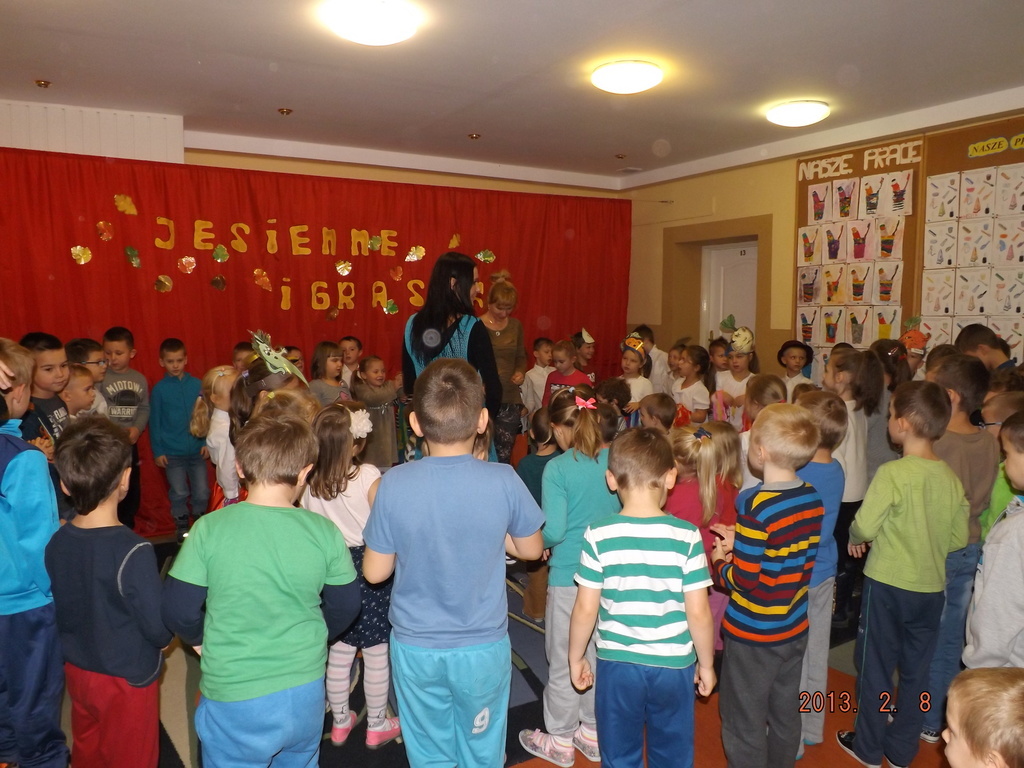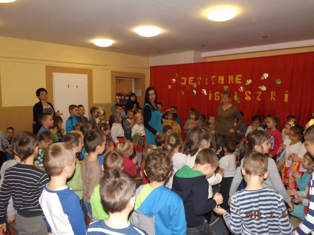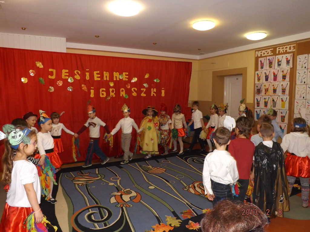 Jesień nie musi kojarzyć się tylko z deszczem i brzydką pogodą. Jesień może być wesoła, co pokazały dzieci z grup 6 letnich " Króliczki " i " Krasnoludki" poprzez swoje występy przygotowane wspólnie z paniami. Na przedstawienie "Jesienne igraszki" przedszkolaki zaprosiły swoich rodziców, kolegów z grup młodszych oraz uczniów ze Szkoły Podstawoswej nr 1 i 2 w Głuchołazach. Jesienne przedstwienie wywołało wśród widowni zainteresowanie i ogromną radość. Występy dzieci zostały nagrodzone wielkimi brawami. Uczestnicy spotkania mieli możliwość uczestniczenia we wspólnych jesiennych zabawach.