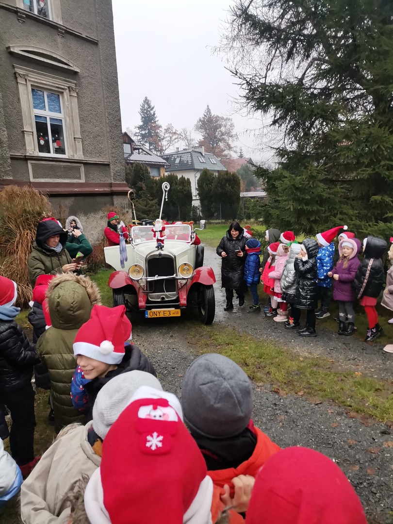 6.12.2022 roku w naszym przedszkolu odbyło się wspaniałe święto-odwiedziło nas 2-óch Mikołajów, Śnieżynka i Elf. Przyjechali do nas wozem retro.