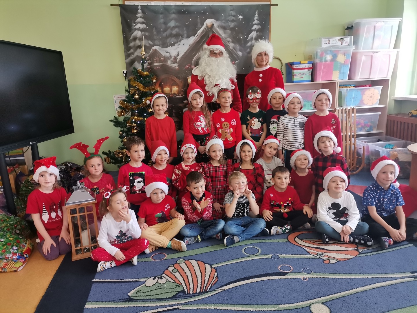 6 grudnia odwiedził nasze przedszkole Święty Mikołaj, który przyjechał do nas wozem strażackim. Grupy starszaków powitały Świętego Mikołaja w ogrodzie przedszkolnym. Nasz wyjątkowy gość odwiedził wszystkie grupy oraz pracowników przedszkola. Wszystkie dzieci radośnie witały Mikołaja oraz Śnieżynkę, recytowały wiersze oraz śpiewały mu piosenki. Mikołaj wręczał paczkę każdemu dziecku oraz zabawki do sali przedszkolnej.