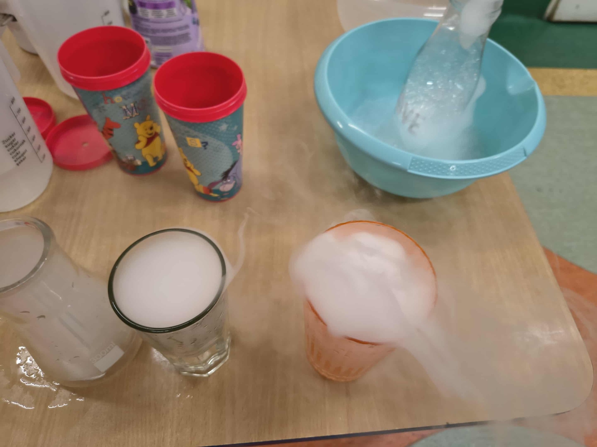 W dniu 21.11.2025 dzieci 5-6 letnie miały okazję uczestniczyć w warsztatach SUCHY LÓD. Podczas warsztatów dzieci poznały niezwykłe właściwości suchego lodu. Obserwowały , jak po połączeniu z ciepłą wodą powstaje gęsta, biała mgła oraz „bulgoczące” bąbelki. Prowadzący pokazał bezpieczne eksperymenty: tworzenie chmury w misce, „dymiący” bańkowy wulkan czy latające pierścienie pary. Przedszkolaki aktywnie uczestniczyły w obserwacjach, przewidywały efekty i zadawały pytania. Warsztaty rozwijają ciekawość, myślenie naukowe i dają dużo radości — wszystko w kontrolowanych, bezpiecznych warunkach.