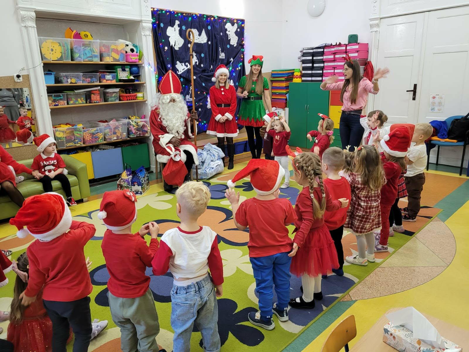 Dnia O5.12.2025 nasze przedszkole odwiedził Święty Mikołaj 🎅. Dzieci z radością powitały gości, zaprezentowały krótkie wierszyki i piosenki, a następnie otrzymały upominki. Spotkanie przebiegło w miłej, świątecznej atmosferze i sprawiło dzieciom wiele radości.